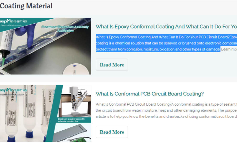 What Is Epoxy Conformal Coating And What Can It Do For Your PCB Circuit Board?Epoxy conformal coating is a chemical solution that can be sprayed or brushed onto electronic components to protect them from corrosion, moisture, oxidation and other types of damage. https://www.deepmaterialcn.com/conformal-coating-material.html